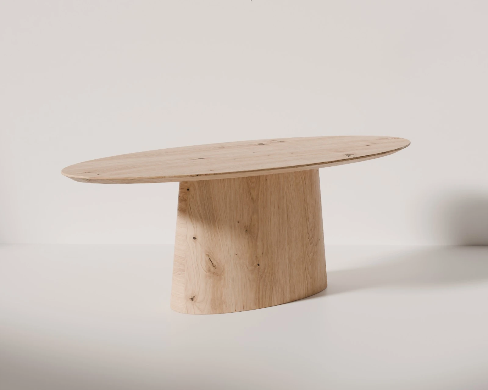 Wyważona forma i nowoczesne podejście do klasycznych materiałów. Stół VOYAGER przyciąga uwagę organicznym kształtem blatu oraz masywną, centralną podstawą, która nadaje mu stabilności i wyrazistego charakteru. To model stworzony z myślą o wnętrzach, w których liczy się design, funkcjonalność i ponadczasowa estetyka.